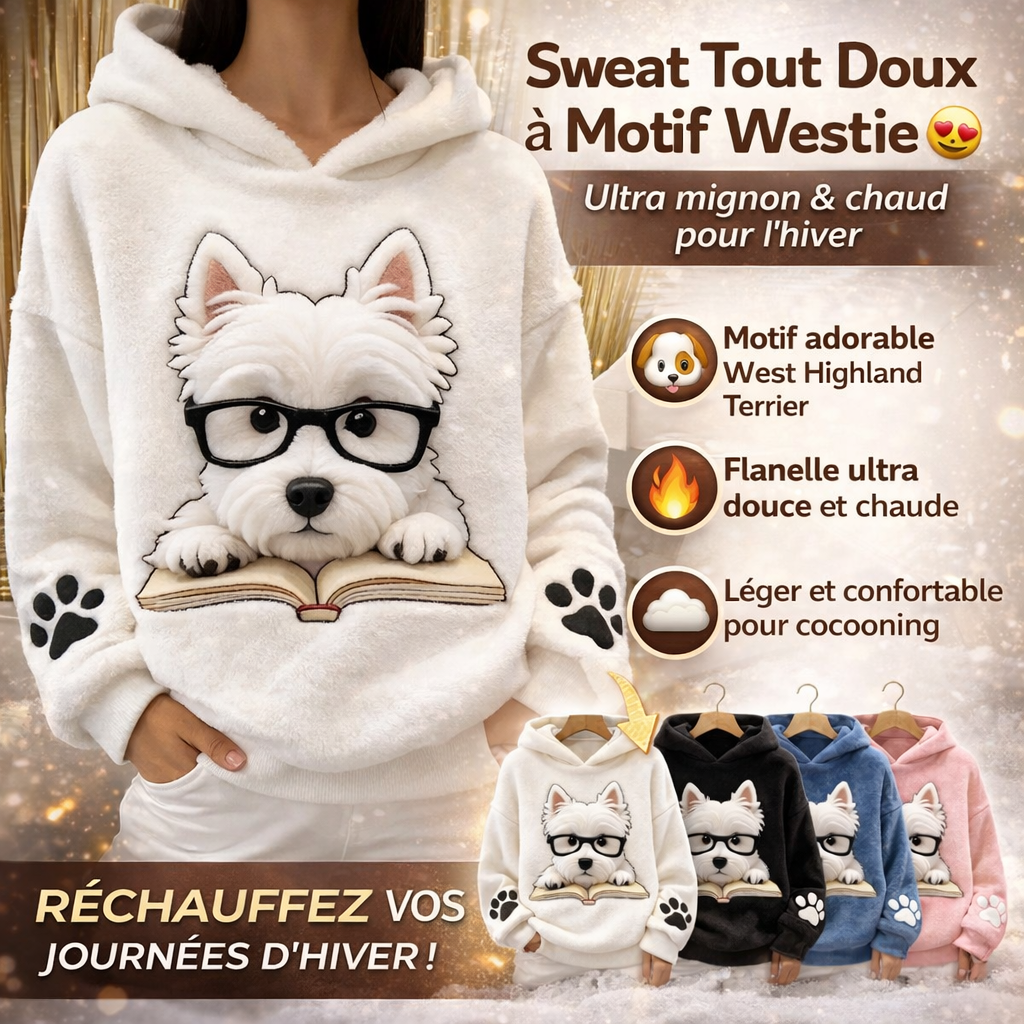 Si vous aimez les chiens et les vêtements confortables, ce sweat est fait pour vous. Son imprimé West Highland White Terrier apporte une touche joyeuse et attendrissante à votre tenue, tout en restant facile à porter au quotidien. C’est le genre de pièce qui attire les regards et déclenche les sourires.