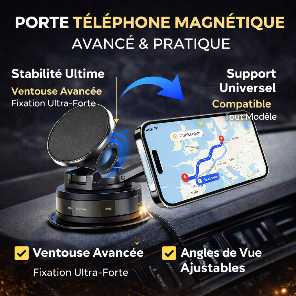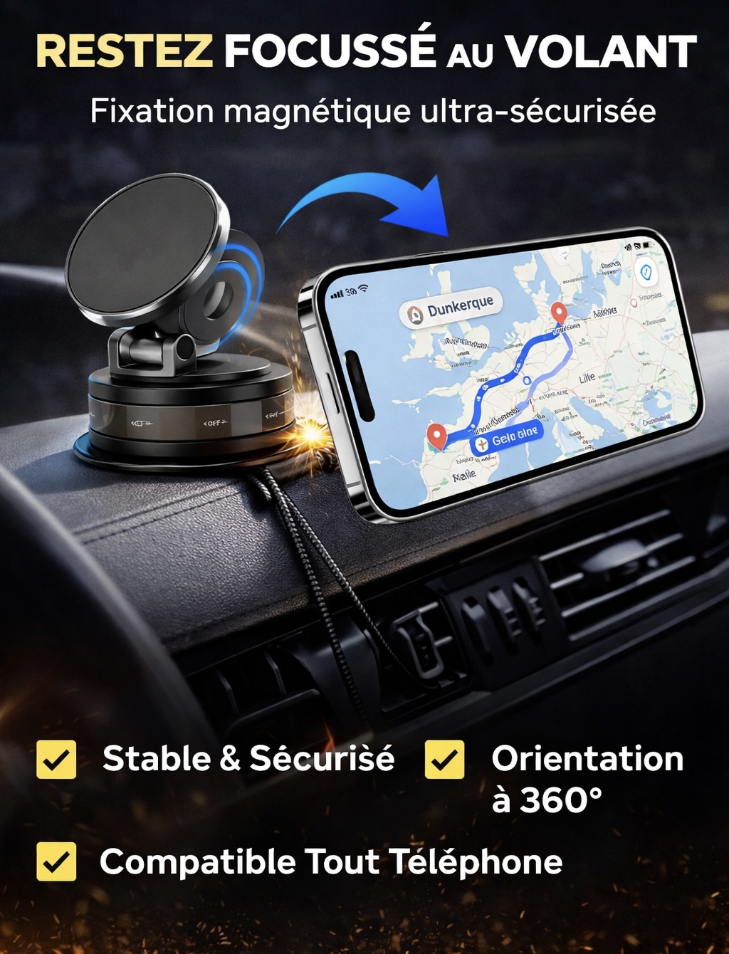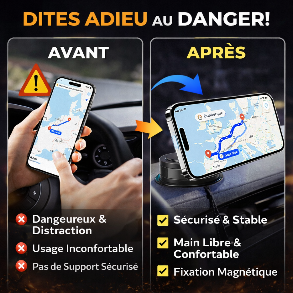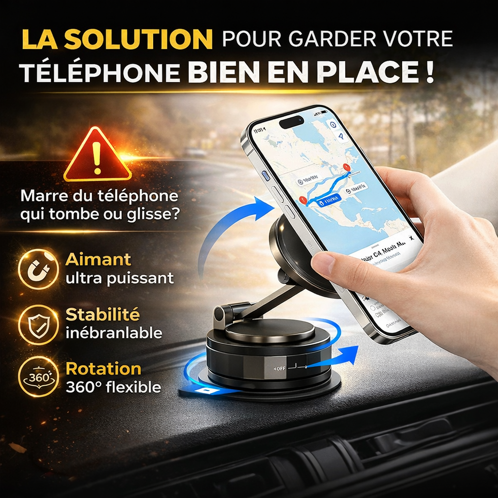 Grâce à sa base renforcée et son système magnétique puissant, votre téléphone reste parfaitement fixé.