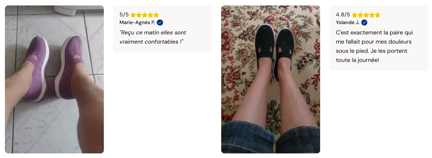 Elles ne promettent pas de miracle. Elles soulagent vraiment. Dès les premiers pas, la différence se sent : zéro frottement, zéro pression, juste un confort qui enveloppe le pied.