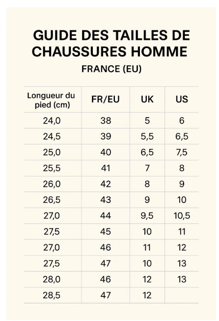 Si tu es entre deux tailles, privilégie la pointure au-dessus.