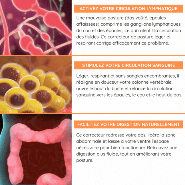 Notre correcteur de posture intelligent ne se contente pas de redresser votre dos : grâce à ses micro-stimulations ciblées, il active le système nerveux et favorise une meilleure dépense énergétique au quotidien.