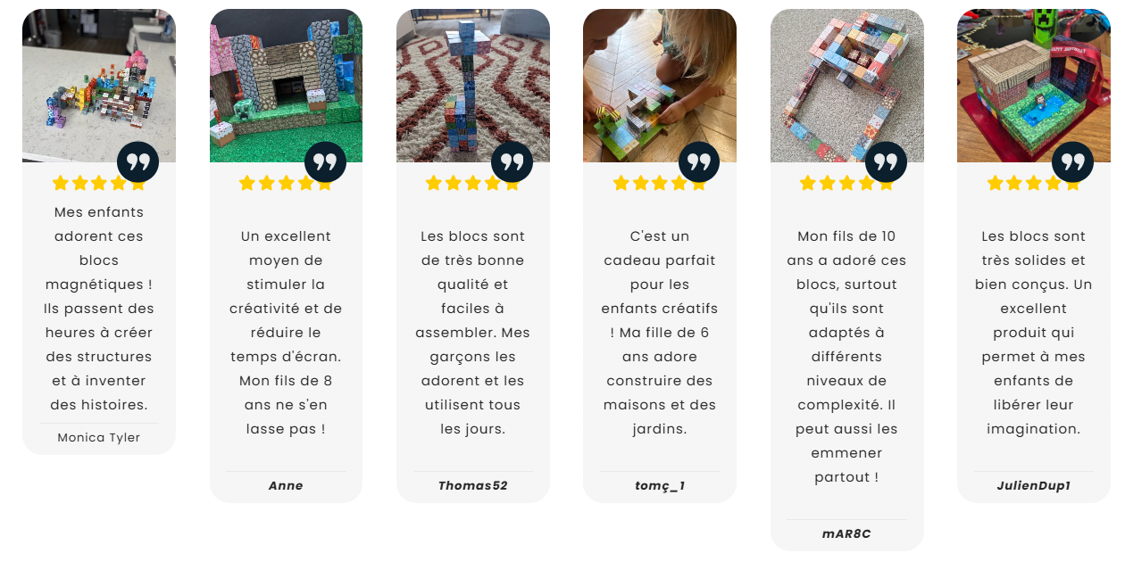 85% des parents affirment que les blocs ont renforcé leur lien parent-enfant grâce aux moments passés à construire ensemble