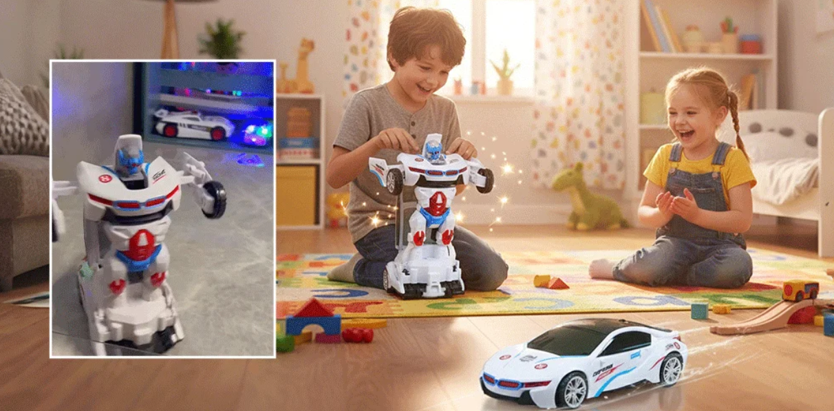Arrêtez de vous contenter de jouets ennuyeux. Notre Voiture Robot à Transformation Automatique se transforme instantanément, propose des lumières et de la musique éblouissantes, et offre un plaisir action sans fin — pour que les enfants profitent d'un temps de jeu dynamique, créatif et plein de surprises.