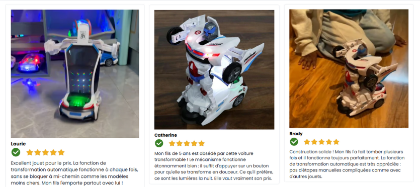 Testé par les parents. Après 3 semaines de jeu intensif, de chutes et de transformations quotidiennes : Zéro fissure. Zéro pièce lâche. Se transforme toujours comme neuf.