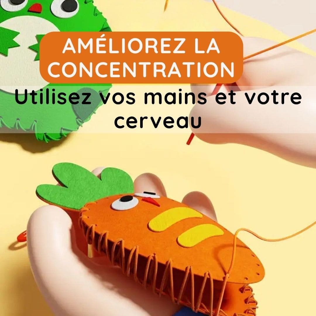 Grâce à des pièces de feutrine prédécoupées, des fils colorés et des personnages attendrissants, la couture devient un jeu d’enfant sans risque, sans aiguille pointue et sans frustration.