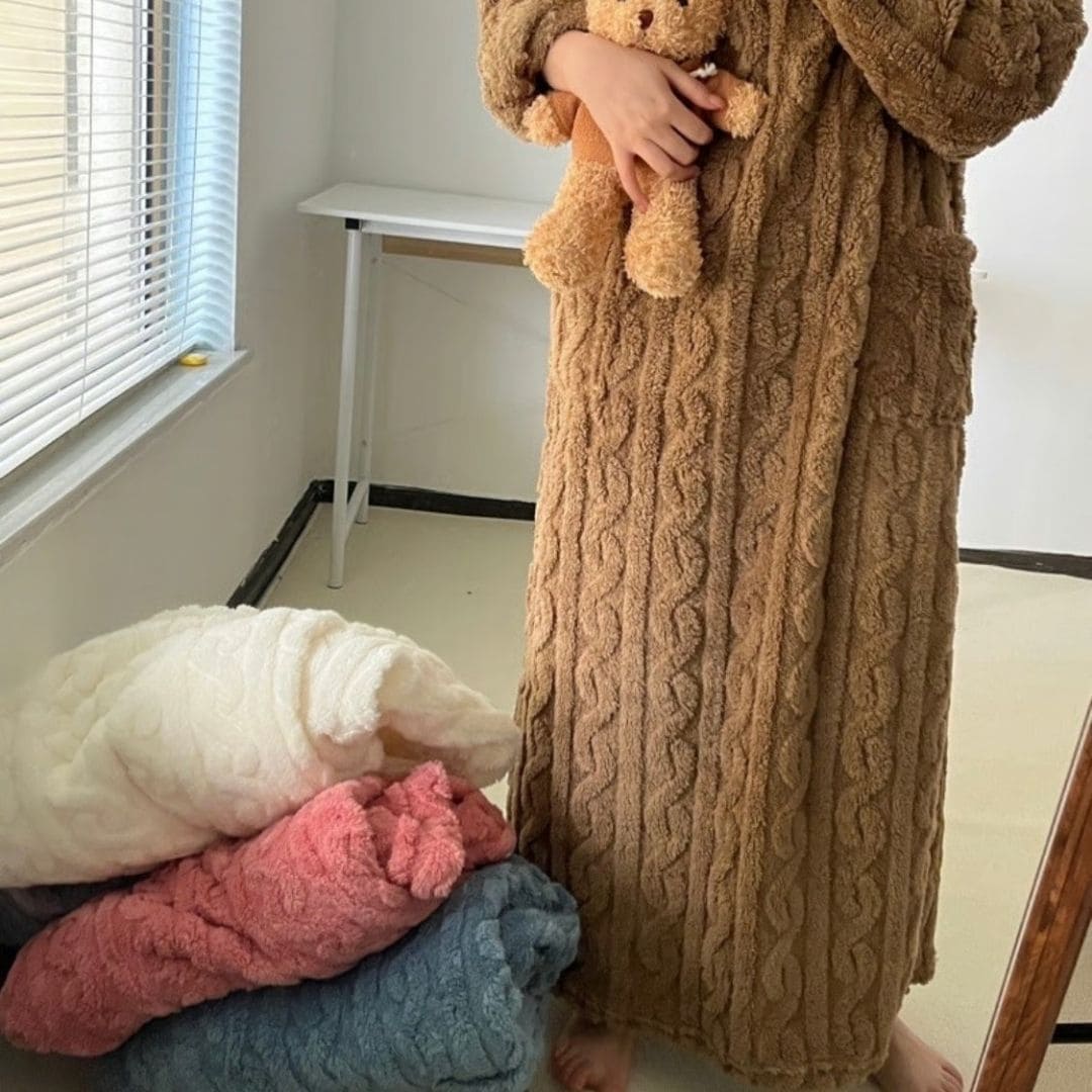 Que vous soyez devant la télévision, en train de lire ou de vous détendre après une journée bien remplie, cette robe est la solution parfaite pour allier confort et style tout en restant bien au chaud.