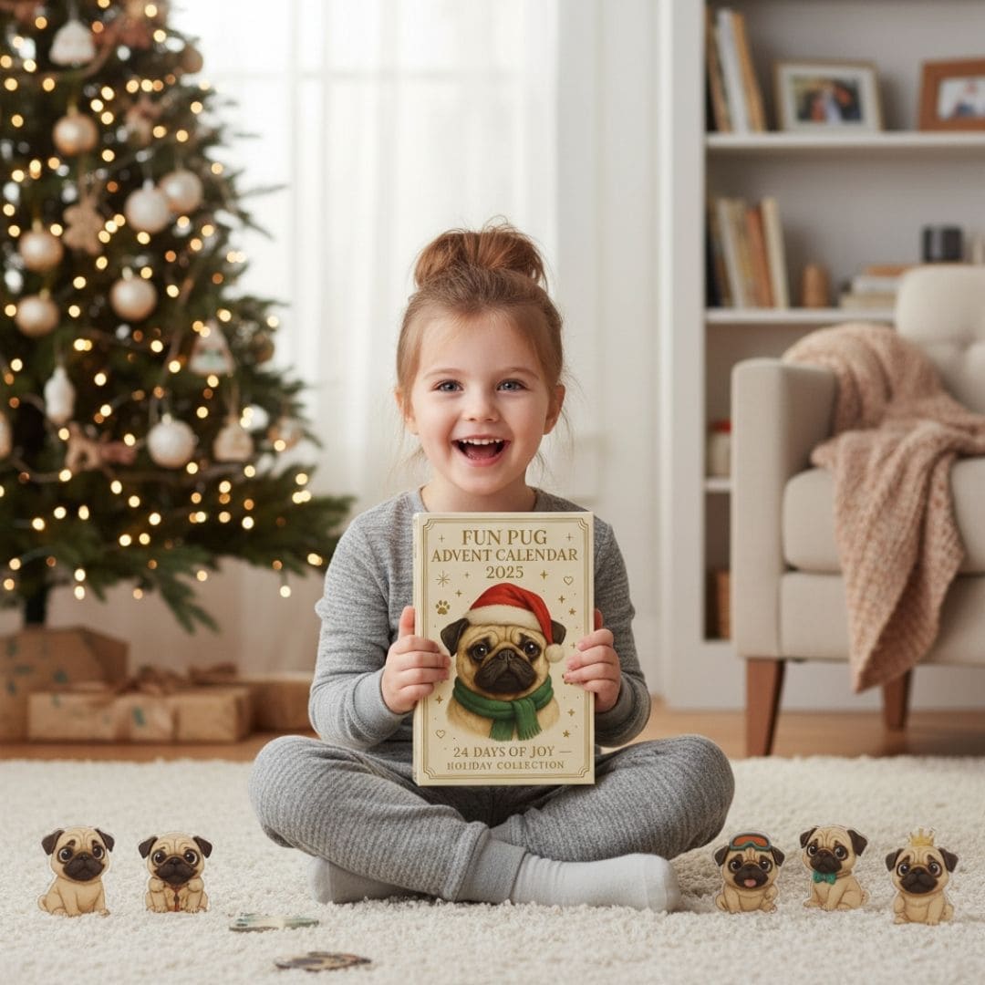 Chaque jour de décembre, ouvrez une case et découvrez un carlin différent, en posture rigolote ou costumée. Un moment de joie simple à partager en famille ou à savourer seul avec un sourire.