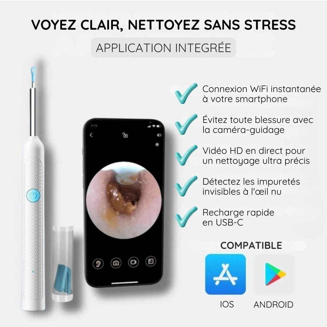 “Un produit incroyable ! Je peux maintenant voir et nettoyer mes oreilles de manière ultra-précise. J'adore l'application, c'est un vrai plus. Plus de risques de me blesser comme avec des cotons-tiges, je recommande vivement !”